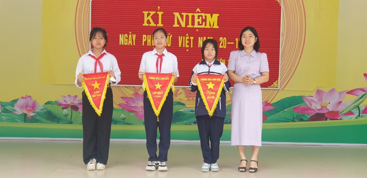 “Ngày Phụ nữ Việt Nam” 20/10 là một ngày lễ kỉ niệm có ý nghĩa rất lớn với phụ nữ, là dịp để tôn vinh vẻ đẹp, khẳng định vai trò của phụ nữ trong xã hội và trong cuộc sống. Nhằm giúp các em học sinh tìm hiểu ý nghĩa của ngày 20/10 Liên đội trường THCS Long Biên đã tổ chức tiết Sinh hoạt dưới cờ với chủ đề "Chào mừng ngày phụ nữ Việt Nam". Sau nghi lễ chào cờ là phần tuyên dương khen thưởng 3 tập thể đã đạt thành tích xuất sắc trong tuần thi đua thứ 6, toàn trường đã được nghe lớp trực tuần 8A5 tuyên truyền, giao lưu với về lịch sử và ý nghĩa ngày Phụ nữ Việt Nam 20/10.