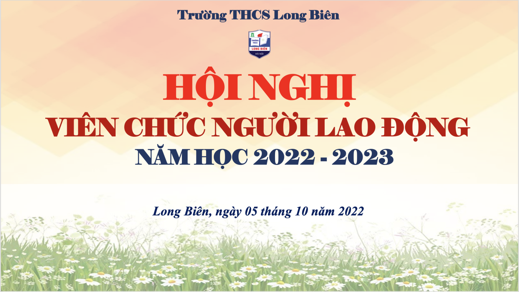 Thực hiện Hướng dẫn liên tịch số 07 /HD-UBND-LĐLĐ ngày 15/8/2022 của Ủy ban nhân dân và Liên đoàn Lao động quận Long Biên về việc tổ chức Hội nghị Cán bộ, công chức, viên chức và Hội nghị người lao động năm 2022. Được sự đồng ý của Liên đoàn Lao động quận và Chi bộ THCS Long Biên, Hội đồng sư phạm và công đoàn Trường THCS Long Biên, ngày 5/10/2022 trường THCS Long Biên long trọng tổ chức Hội nghị viên chức và phát động thi đua năm học 2022 - 2023.