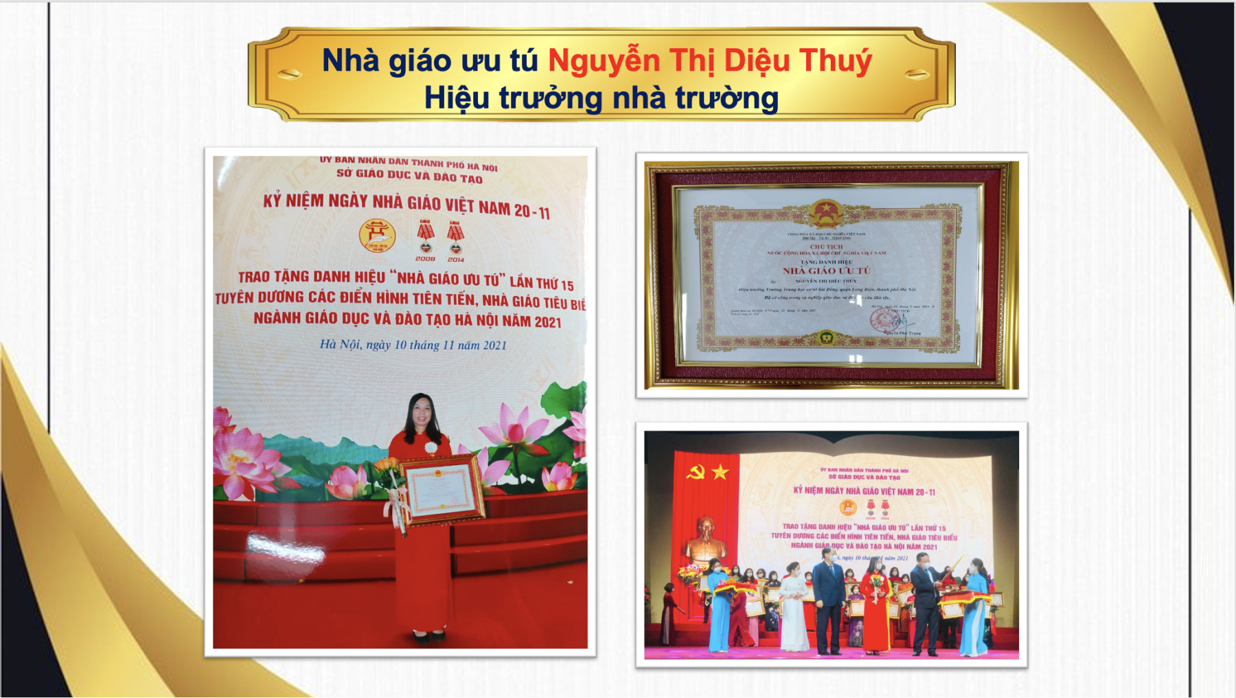 nhà giáo đã được Bộ trưởng BGD&ĐT tặng Bằng khen năm học 2017-2018 với thành tích Sáng tạo, đổi mới trong quản lý và dạy học, UBND TP Hà Nội tặng