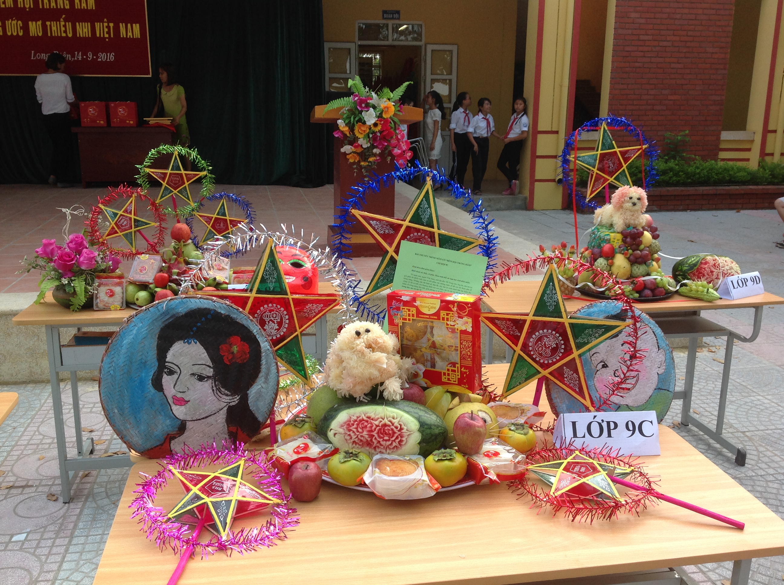Ngày tết trung thu không thể thiếu mâm cỗ trông trăng - một vật phẩm để tỏ lòng đến chú Cuội và chị Hằng đã mang ánh sáng dịu dàng cho trần thế, tôn thêm sắc màu đêm trung thu. Không khí chuẩn bị cho trung thu ở trường THCS Long Biên rất khẩn trương, tấp nập, vì nhà trường vẫn phải đảm bảo lịch học và thời gian tổ chức chỉ trong ba tiết buổi chiều. Từ sân trường đã được quét dọn sạch sẽ, trang hoàng sân khấu lộng lẫy đến các lớp giáo viên, phụ huynh, học sinh nô nức sắm sửa, các em rất vui hứng khởi chuẩn bị cho mâm cỗ trung thu của lớp mình.