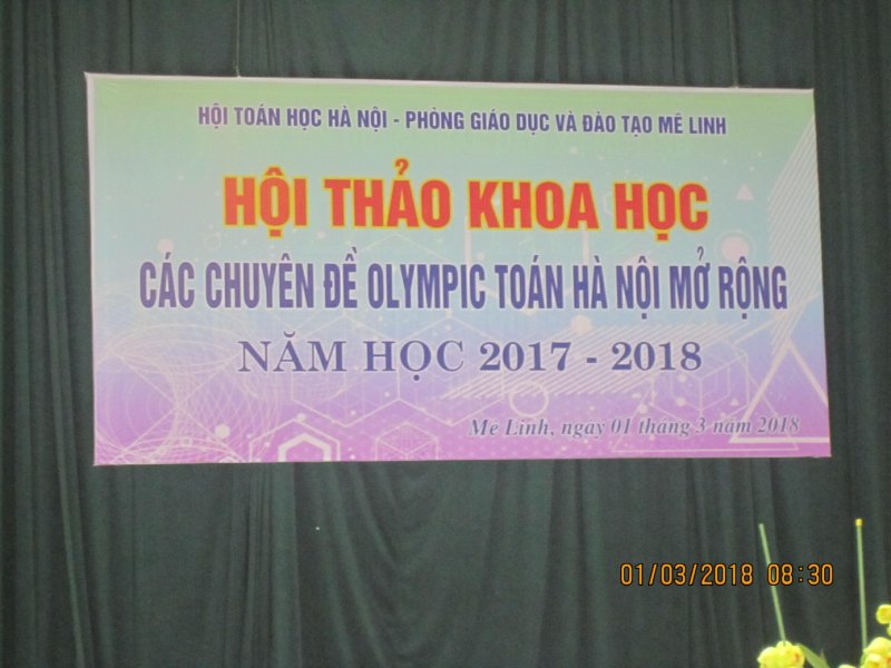 Ông bầy tỏ rất vinh dự cho ngành GD-ĐT Mê Linh nói chung và đội ngũ giáo viên dạy môn Toán nói riêng được tham dự hội thảo khoa học các chuyên đề OLYMPIC Toán học mở rộng với chủ đề “Nâng cao chất lượng dạy và học môn Toán trong giai đoạn hiện nay”. Ông giới thiệu khái quát về huyện Mê Linh và tình hình giáo dục của huyện. Giáo dục Mê Linh từ ngày sáp nhập về thành phố Hà Nội (tháng 8 năm 2008) đã phát triển mạnh mẽ cả về quy mô, chất lượng và hiệu quả giáo dục. Hiện đã phổ cập giáo dục Tiểu học và Trung học cơ sở, 25/75 cơ sở giáo dục được công nhận đạt chuẩn quốc gia, chất lượng đại trà ổn định, kết quả thi học sinh giỏi tiến bộ đáng kể, luôn thuộc top 10 trên 29 quận huyện trong thành phố. Ông tin tưởng rằng với sự tham gia tích cực của các đại biểu, hội thảo có ý nghĩa thiết thực trong quá trình dạy và học tại các trường THCS trên địa bàn huyện. Ông gửi lời trân trọng cám ơn Hội Toán học Hà Nội đã tin tưởng phối hợp với phòng GD-ĐT tổ chức hội thảo này, giúp cho địa phương có được cách nhìn mới, đầy đủ hơn và cụ thể hơn về công tác bồi dưỡng học sinh giỏi, là cơ sở quan trọng để xây dựng và phát triển công tác bồi dưỡng học sinh giỏi trong thời gian tới.